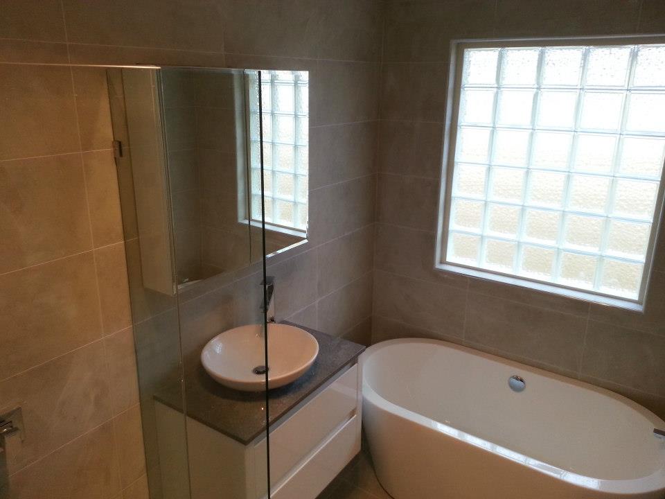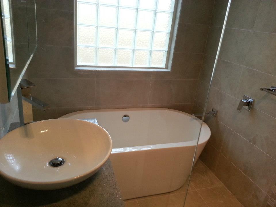 Layout – This Brick and Tile home built in 1975 is full to the brim with arch ways every hallway has one its overkill to the max . So when you arrive at the bathroom it no shock its staring straight at you. Its a huge room but looks tiny with this arch way covering the entire room blocking the light darkening a room, its important to note light makes the difference. First we removed it brick by brick you have to be careful you got from low to high. We then removed the tiny brick up bath and opened the whole room. We replaced its with a beautiful practical freestanding bath. Converted the vanity to wall hung to create space. Finally making the shower a walk in two fixed panel set up with the combo rail perfect for showering and cleaning.