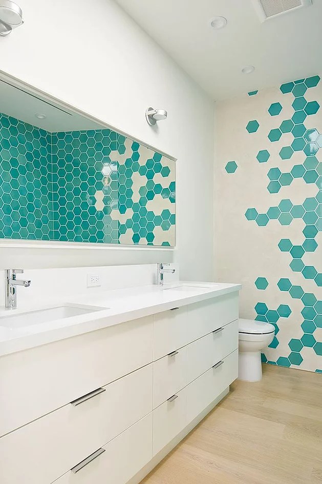 Black-and-white hex tiles will always be classic, but in 2018, it’s oversize, coloured hex tiles that will be all the rage. They add a pop to the room with terracotta yes that 70’s disaster is making a come back in the hexagon style. Below in this perth bathroom is a combination of green and white to make you feel warmly towards the wet room
