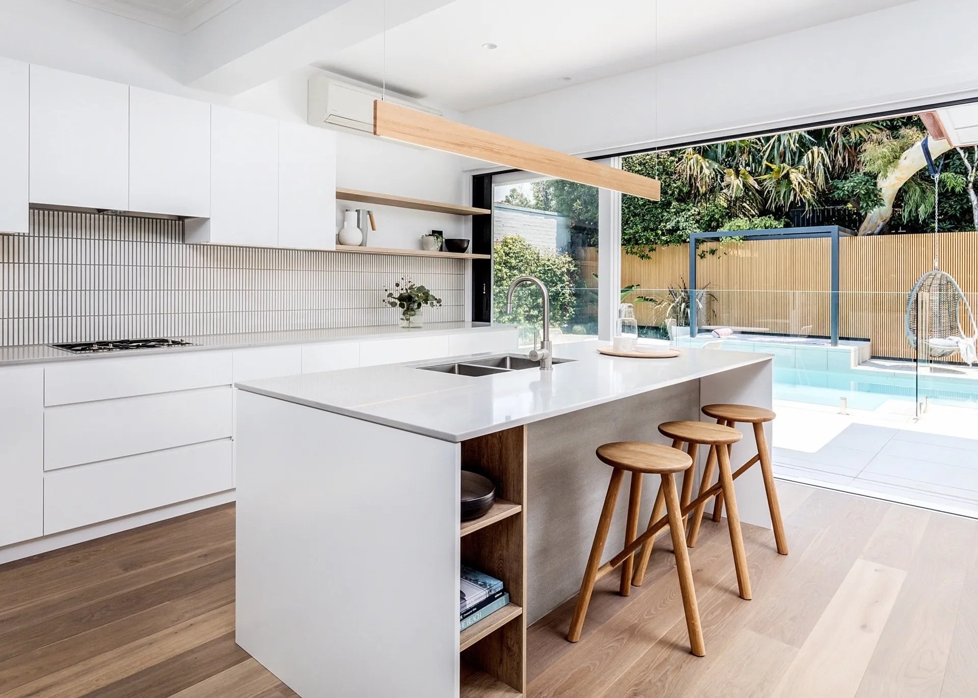 Casual beach-style kitchens are more laid back. These styles of kitchen embrace a bit of chaos, they have more color, more timber and wood finishes with a little bit of personality.