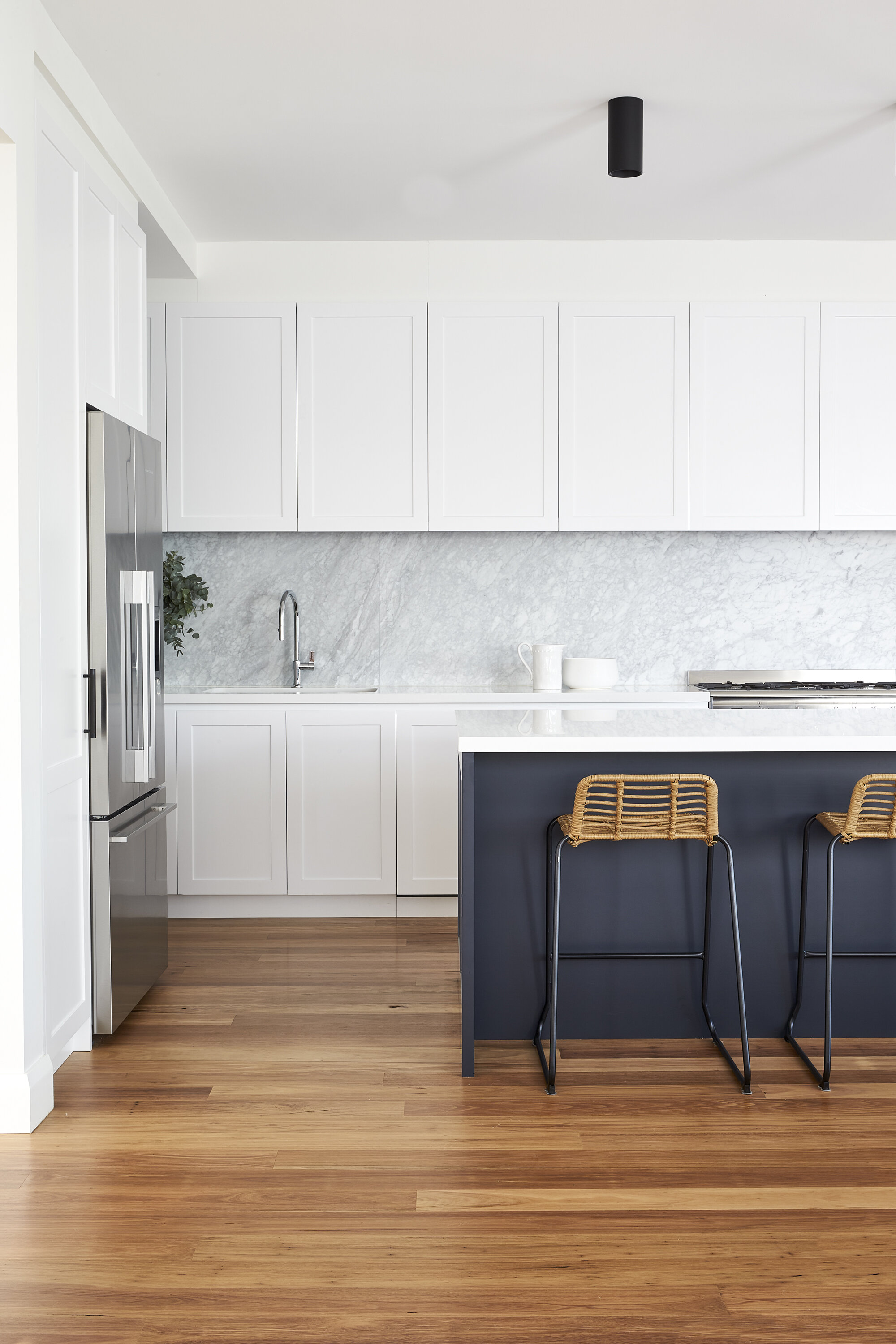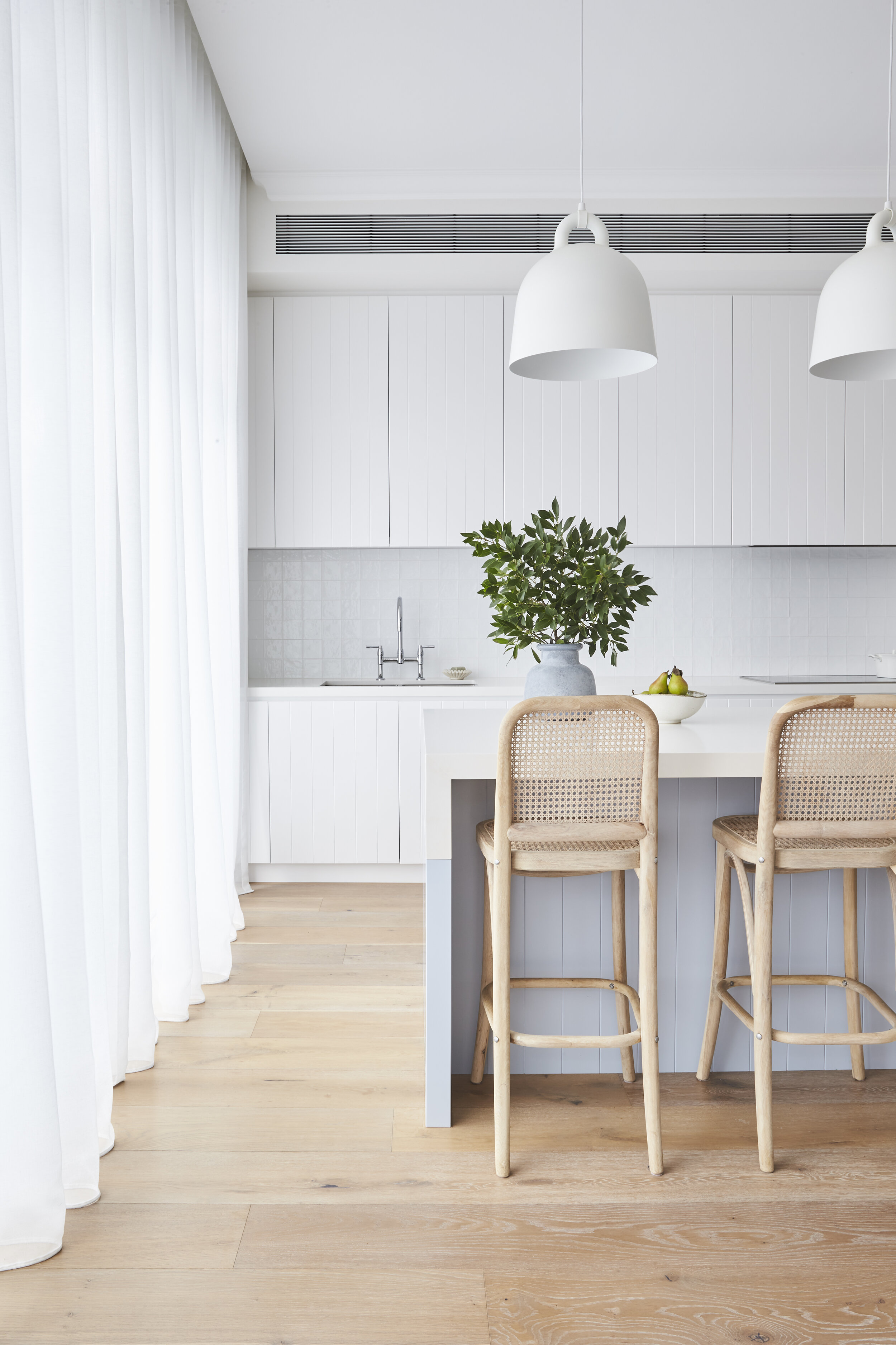 The coastal Hampton finish is pretty close to a normal Hampton kitchen but with more white timber framing and little bit more organic features.