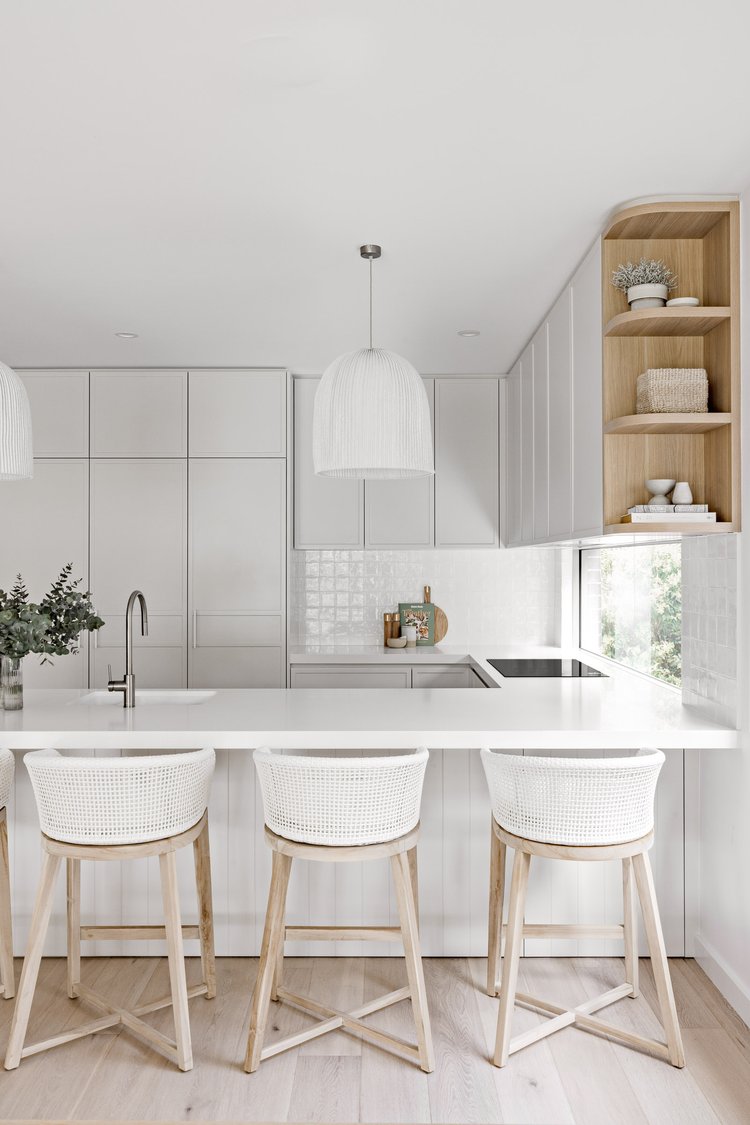 Coastal kitchens provide you with a casual and breezy beach lifestyle with a neutral palette, natural materials, and classic finishes so for me they and Scandi-style kitchens are the most relaxing.