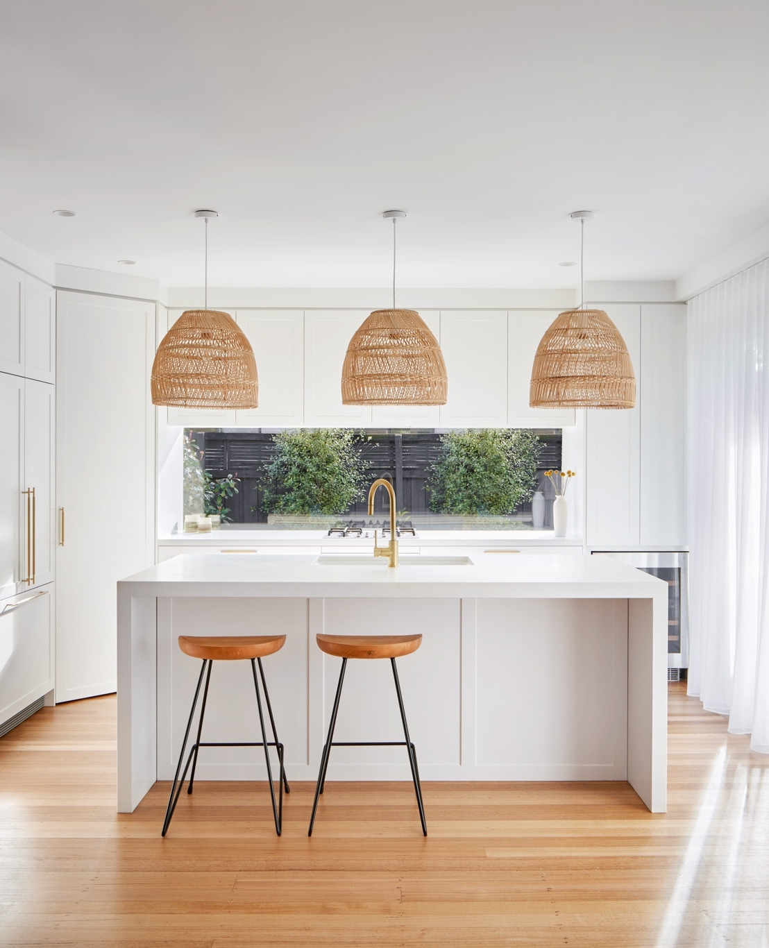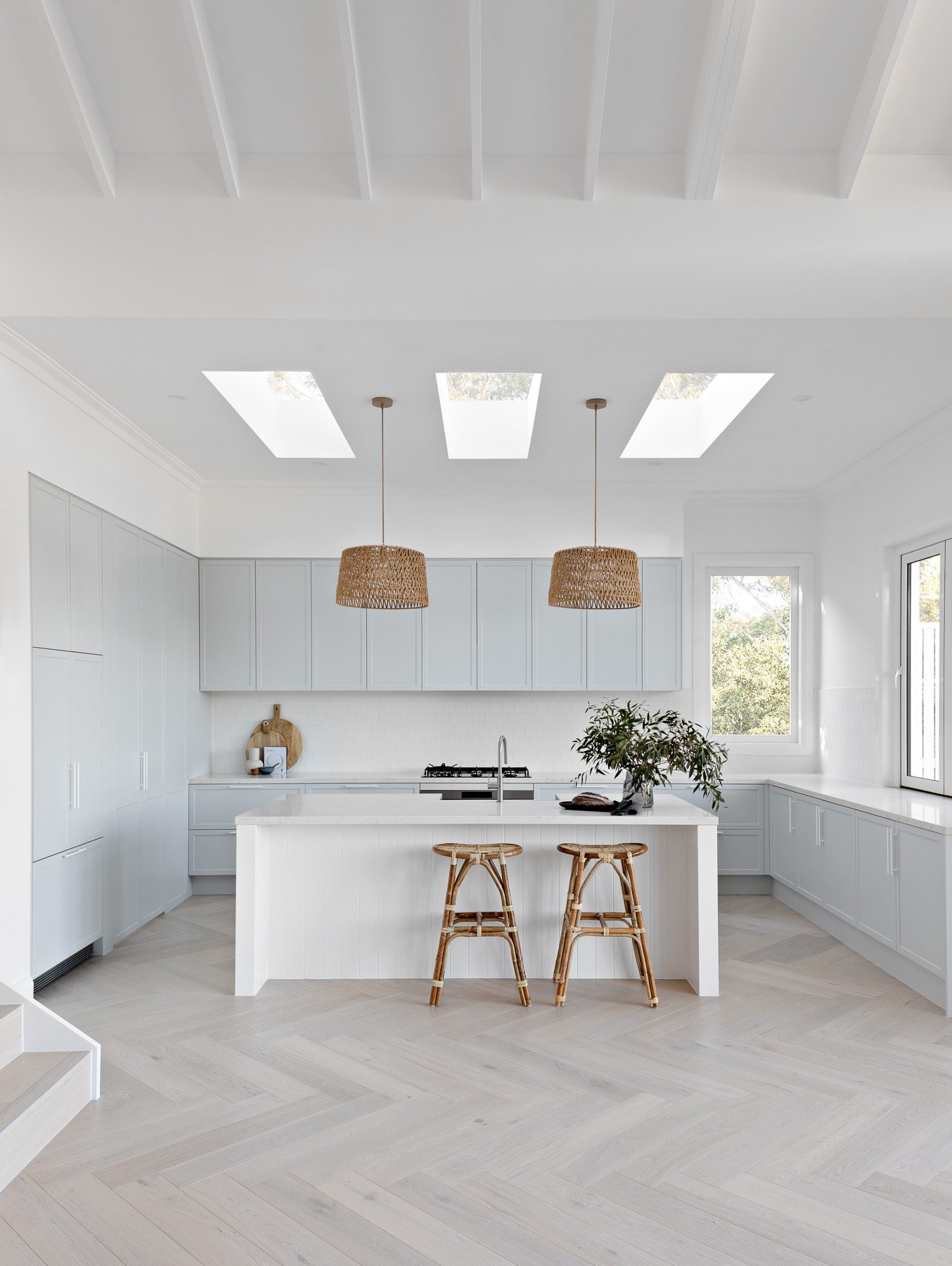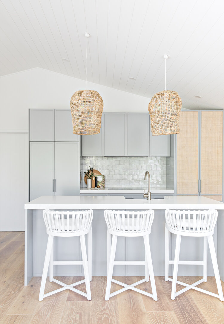 Undoubtedly the biggest trend for coastal kitchens is the use of wood pendant lights of all shapes and sizes.