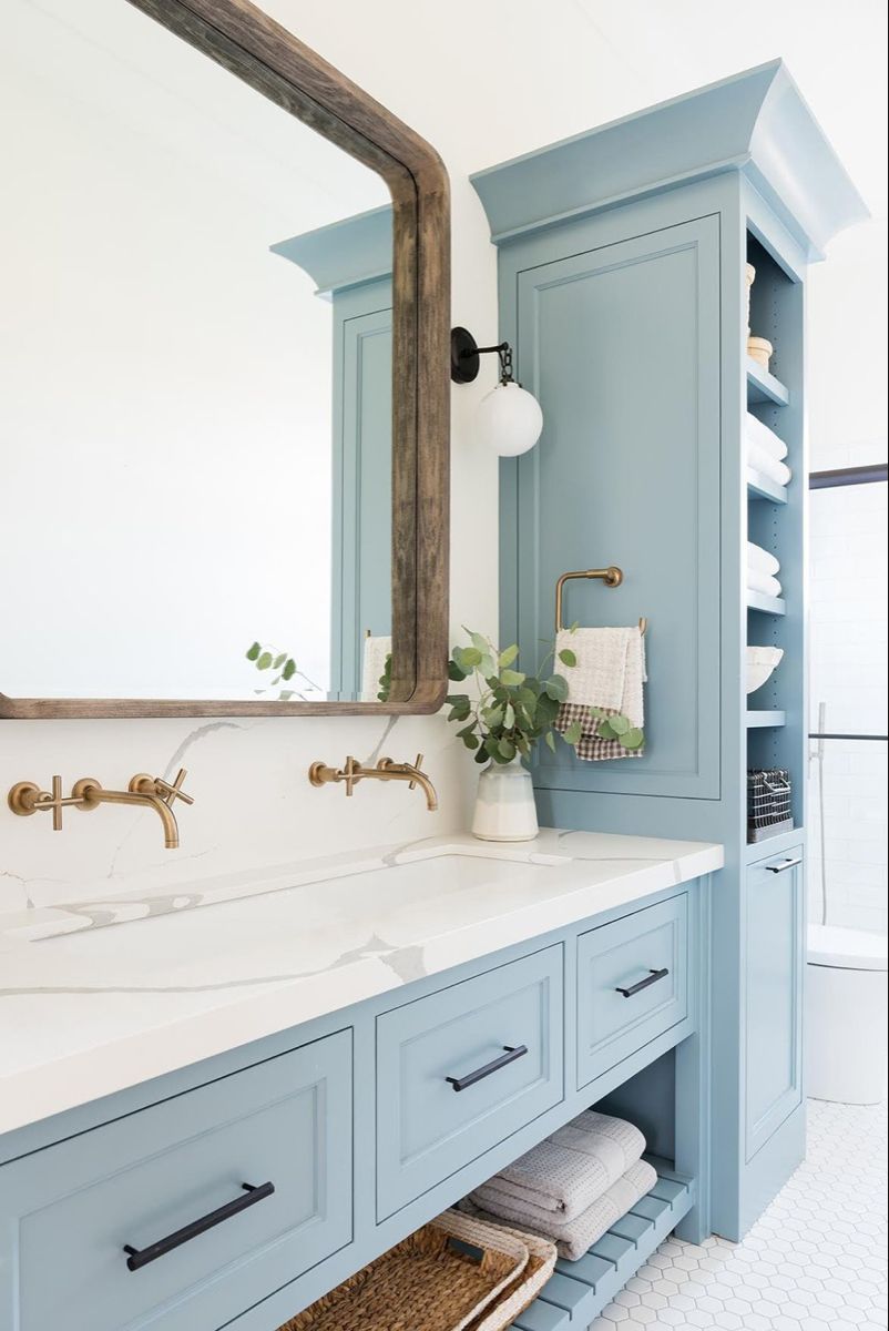 You can place tall cabinets in a bunch of layouts of a larger size but I wanted to focus on smaller bathrooms.