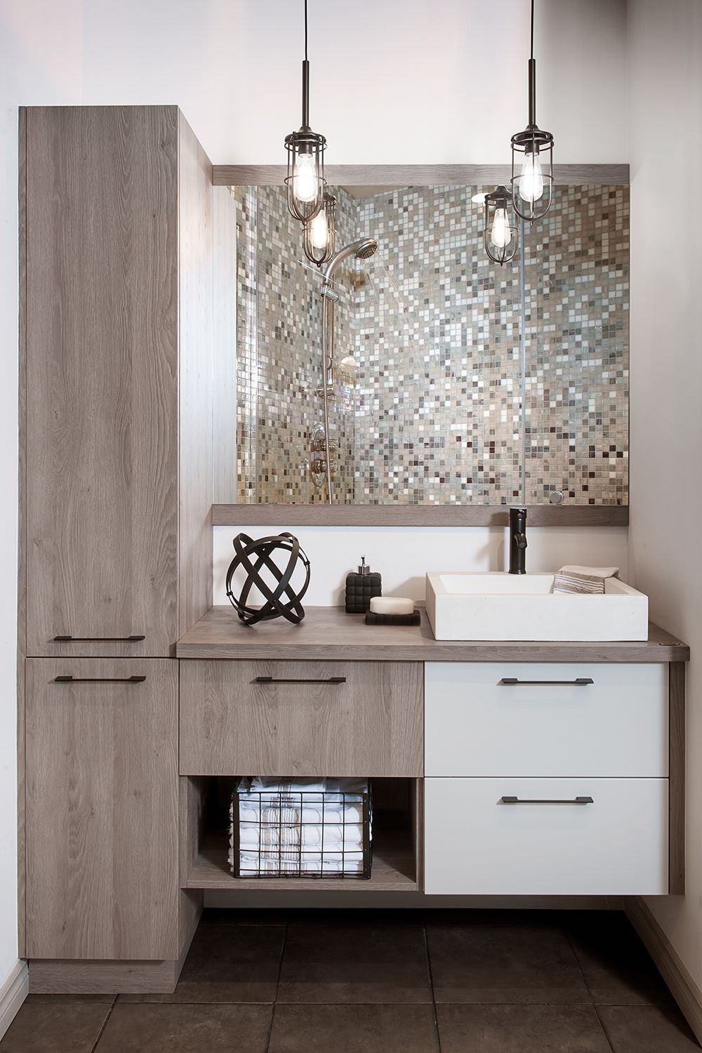 Timberline also have matching vanities to their tall cabinets which is what you want for renovating a bathroom.