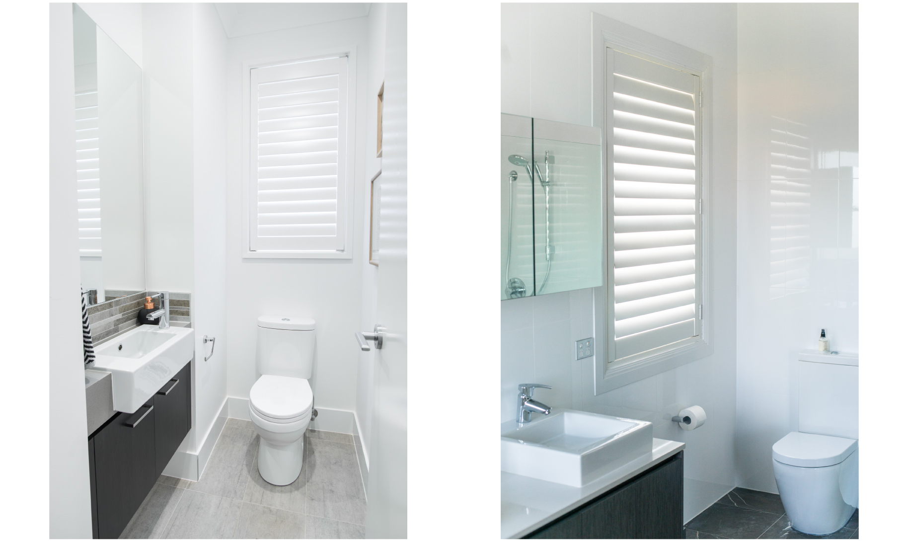 • Being stylish is probably the biggest upside of plantation shutters in your bathroom as they provide a real wow factor or a subtle feature that will go with your hamptons/beach style bathroom renovation.