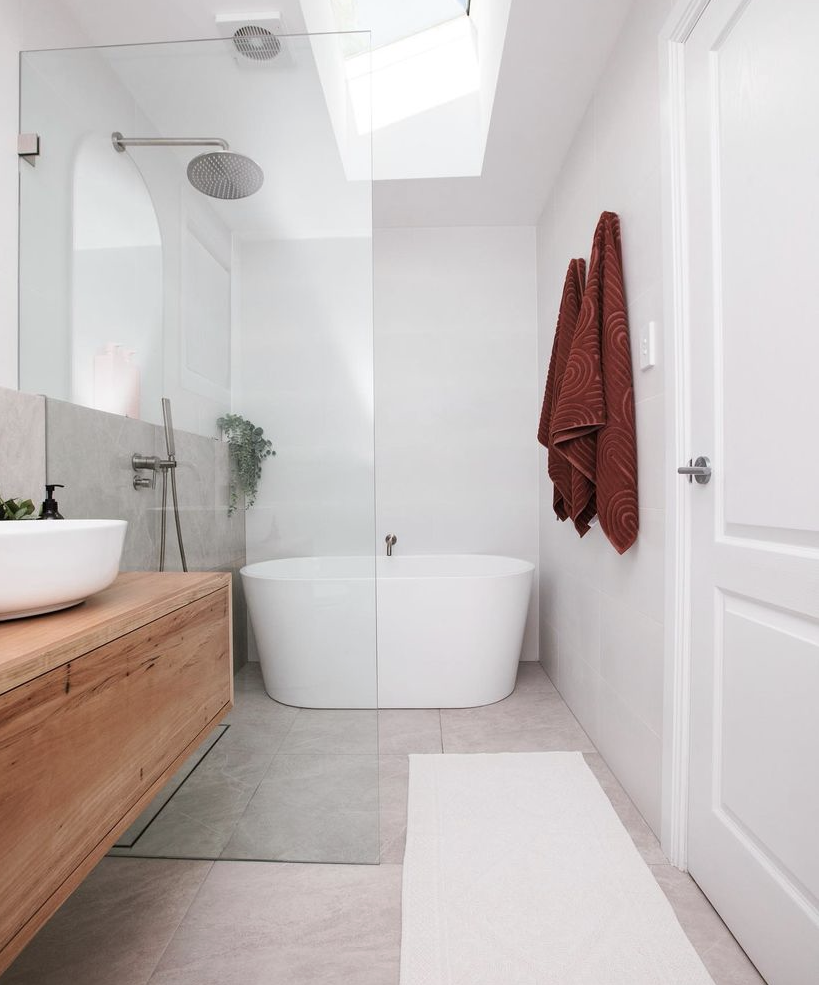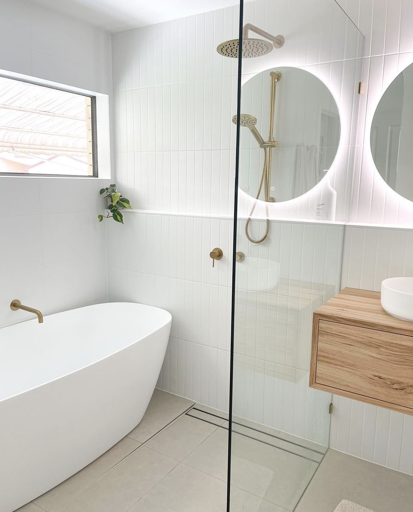 Sometimes as renovators and designers we are always trying to reinvent the wheel. This stunning renovation below shows you that you know what white looks great. It looks and feels so fresh especially with that beautiful LED mirror, striking timber vanity and the freestanding bath that feels so inviting.