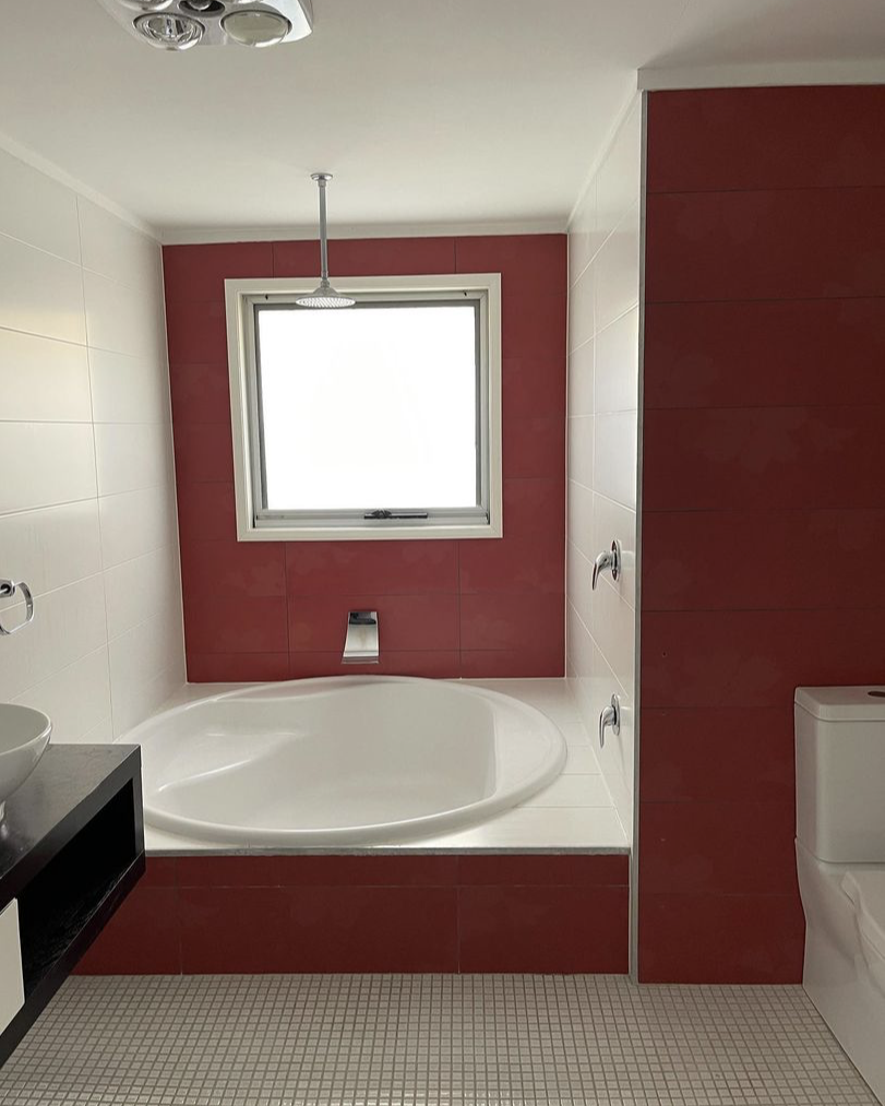 You can see from the before of this bathroom renovation how much effort goes into creating a bathroom. The owners have done an incredible job putting this together one thing that really stands out about this wet room renovation is the use of the pink concrete fittings. That concrete bath from Concrete Nation is amazing in person and photos do not do it justice.
