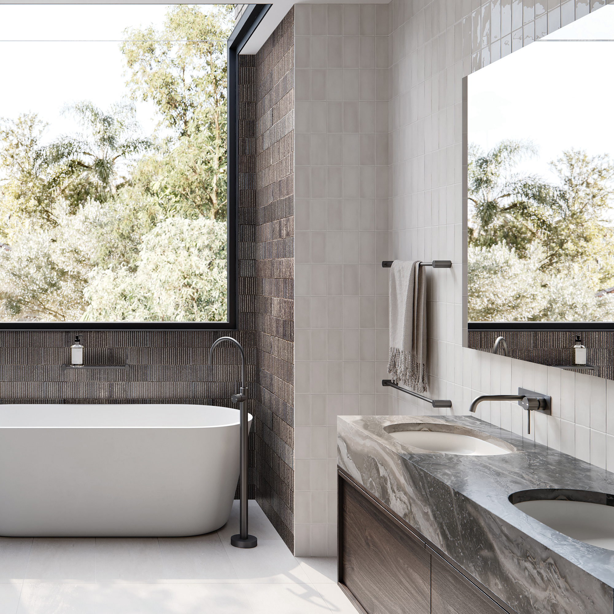 Unquestionably my favourite part of these is showing you the types of bathrooms to use gun metal tapware in.