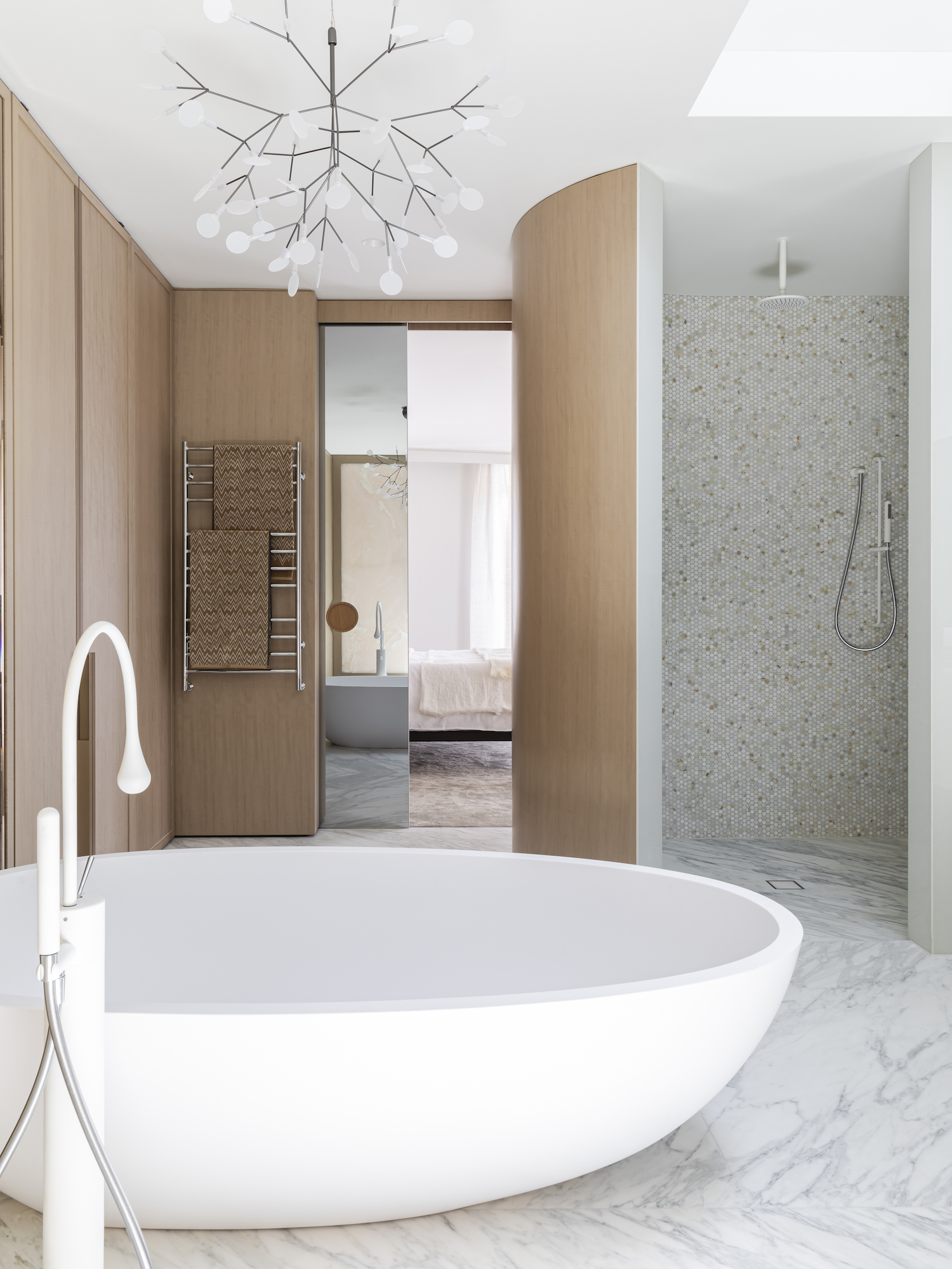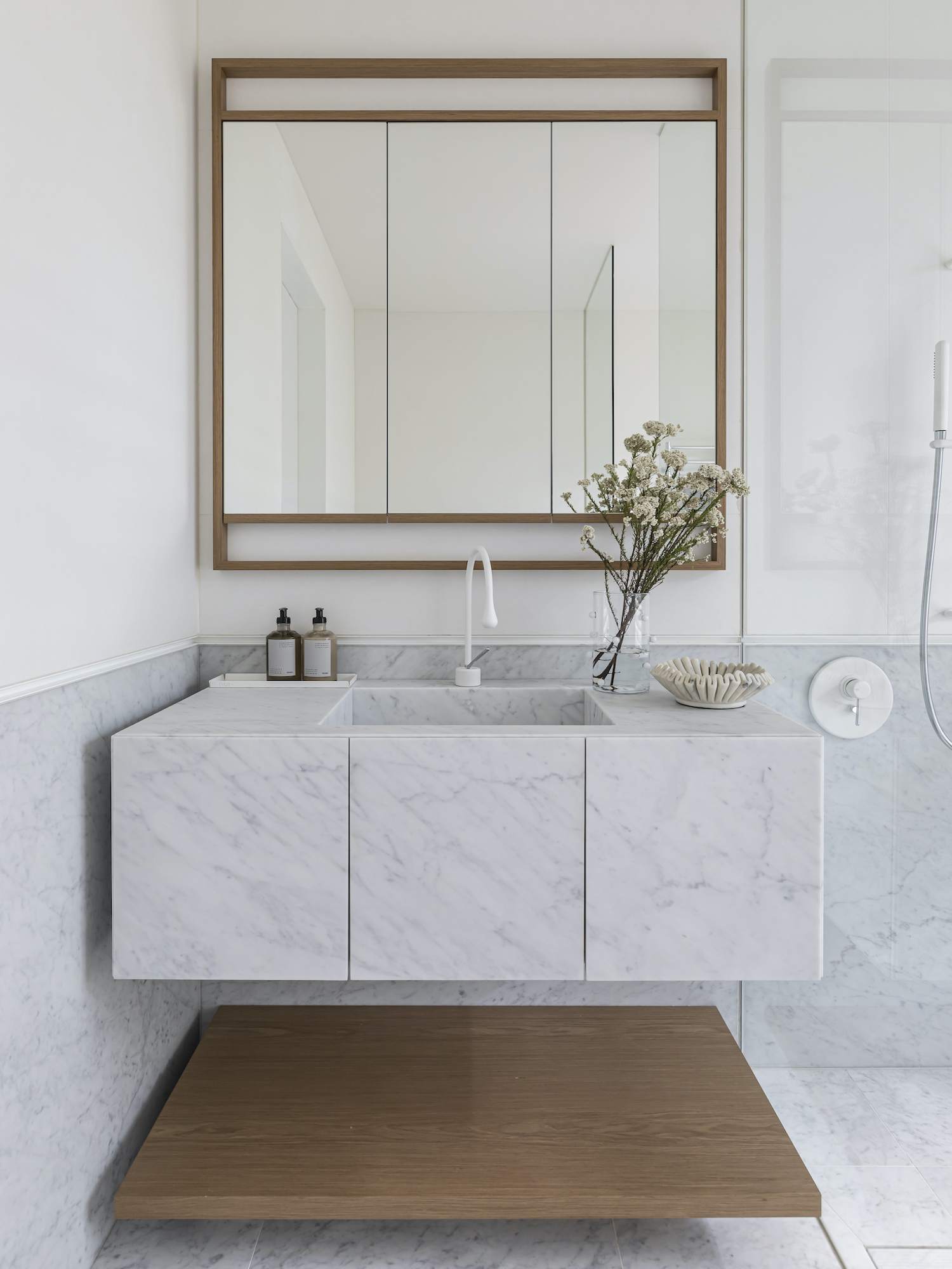 Matt white tapware also goes great with marble-type finishes in your bathroom allowing for more of a blending feel.