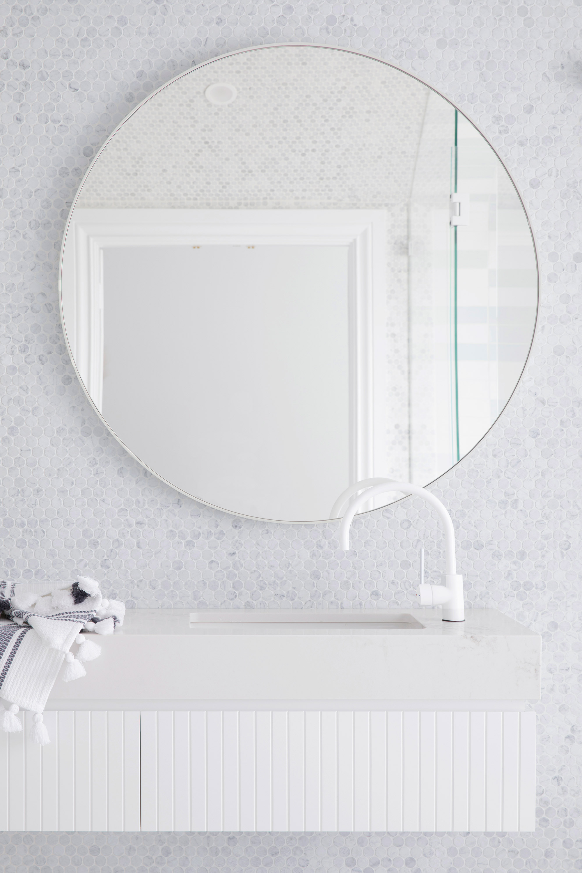 With white tapware, it looks stunning in person. As someone who has taken thousands of bathroom photos often anything matt-based does not pop the way you would love it to unless all the stars align.