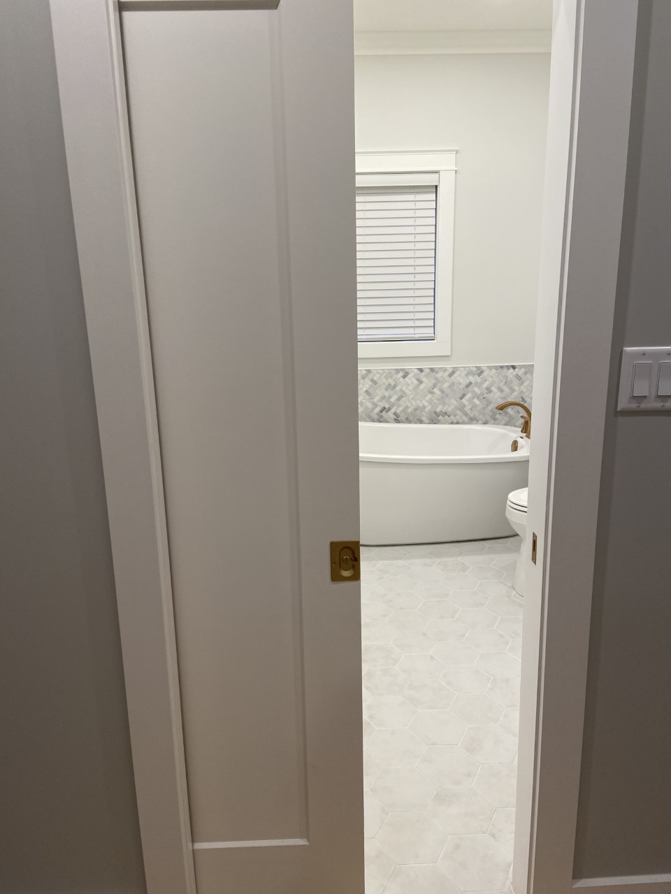 Pocket doors are perfect doors for bathrooms. They are are the best for small bathrooms where you have limited space.