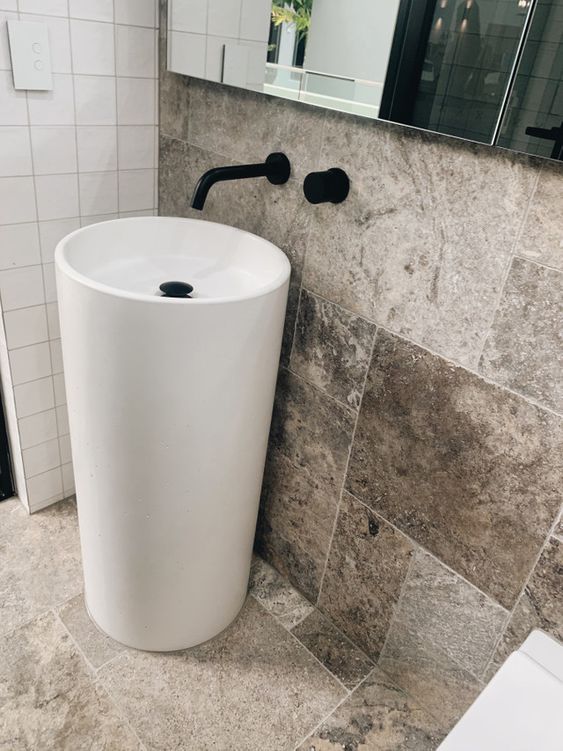 Below are some amazing concrete large sinks to add a little bit of wow factor from CONCRETE NATION and NOOD CO. Instead of the many traditional sinks that are just floating or have a tiny cupboard below the unique column basins are a little pricy but often a wow factor that images do not do justice you need to see them in person.