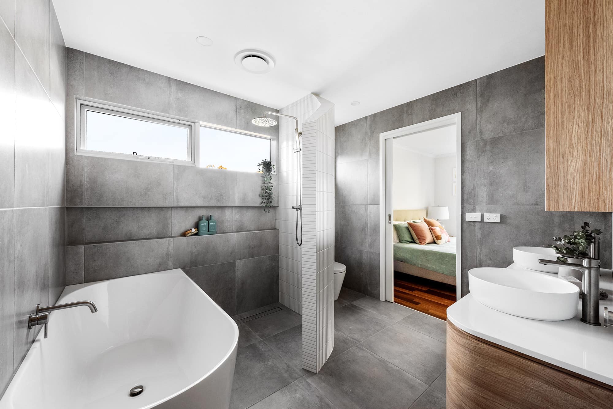 In reality, the main benefits of barn door sliders are just to create a feeling of space in a bathroom mainly designed for ensuite renovations. They make small bathrooms feel bigger as you don’t have the hinged section going into the bathroom area.