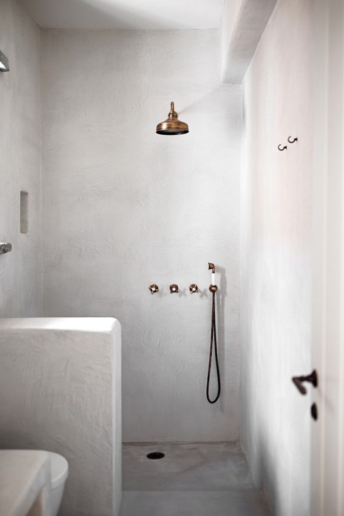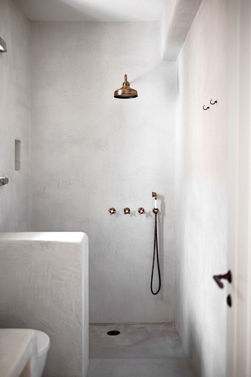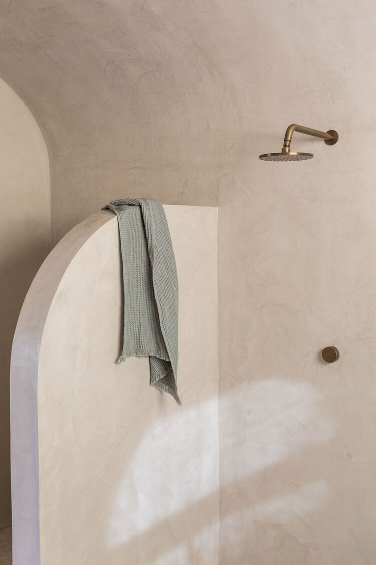 Tadelakt can be tinted to just about any colour imaginable but neutral tones create the most authentic finish, in our eyes. For contrast, add brass accessories that offer a metallic sparkle to an otherwise neutral palette.