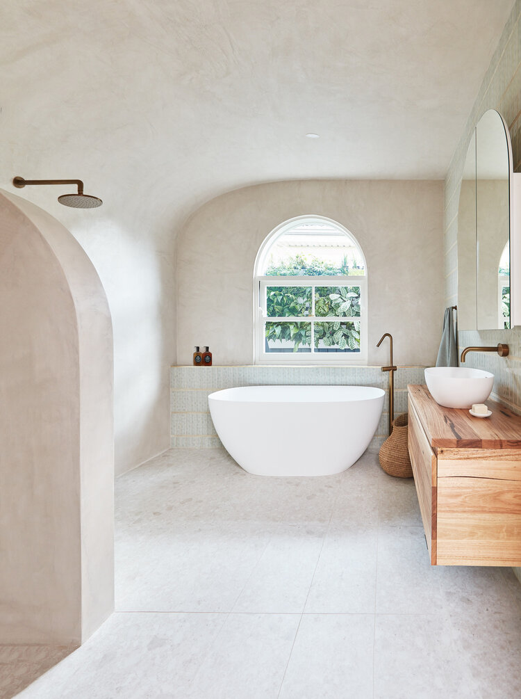I personally do love plaster bathroom walls when done right as they create such an incredible space. Below is a beautiful plastered bathroom renovation by the three birds team that really pops and is the better example of this style of renovation can come out.